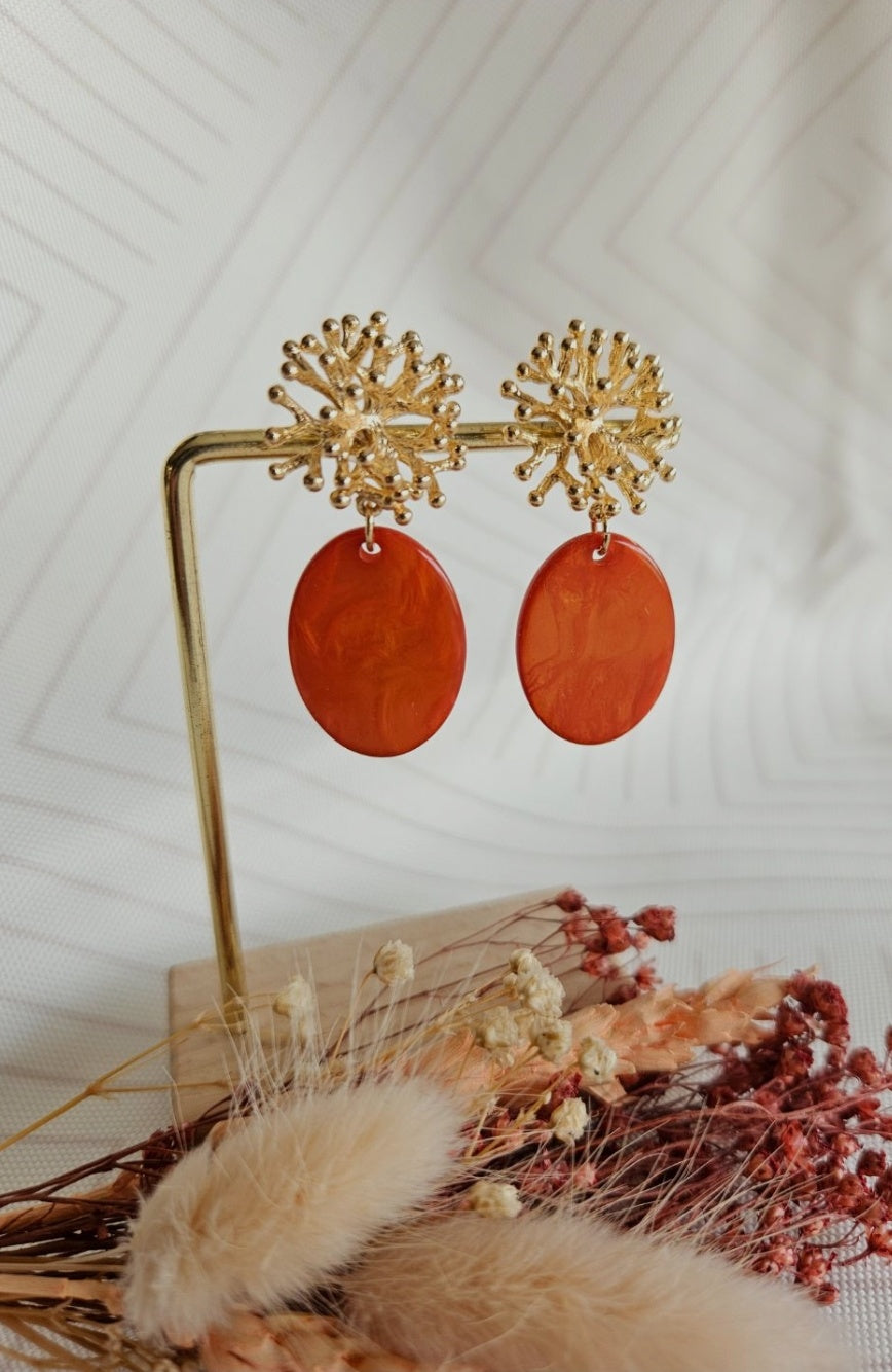 Ben jij op zoek naar outstanding oorbellen, dan is dit wat je zoekt! Een 18 karaats vergulde magnifieke oorsteker en een hanger in prachtig oranje kleur. Love!